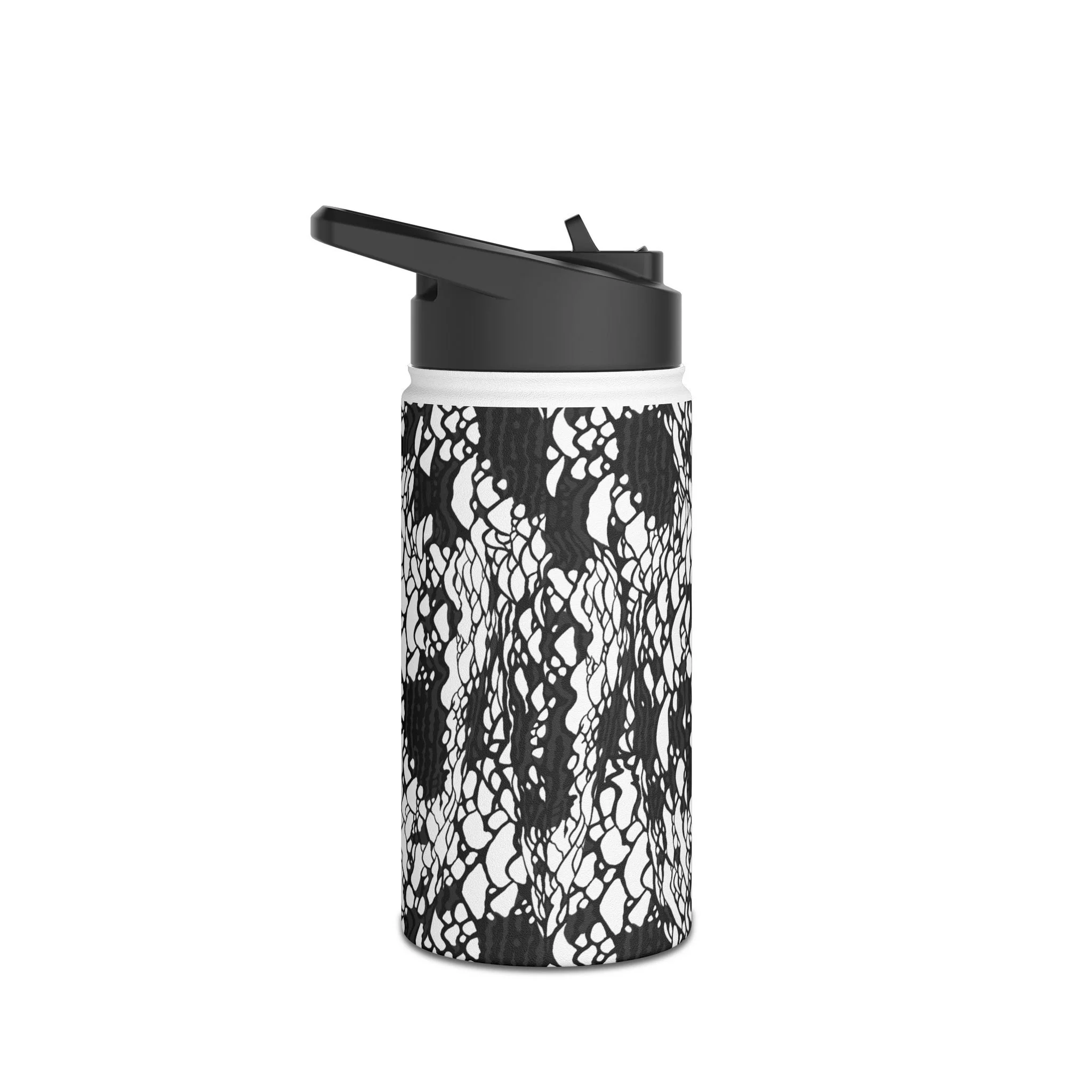 This stainless steel water bottle blends rugged insulation with hand-drawn, monochrome patterning for a look that feels both modern and tactile. The double-wall construction keeps coffee hot through a morning commute or water icy on outdoor runs. The matte, grainy finish gives the print a subtle, textured presence that won’t shout but will draw a second look. A secure twist-on polypropylene lid and BPA-free materials mean you can carry it confidently to the studio, trailhead, or desk. Available in three sizes to match how you move through the day.